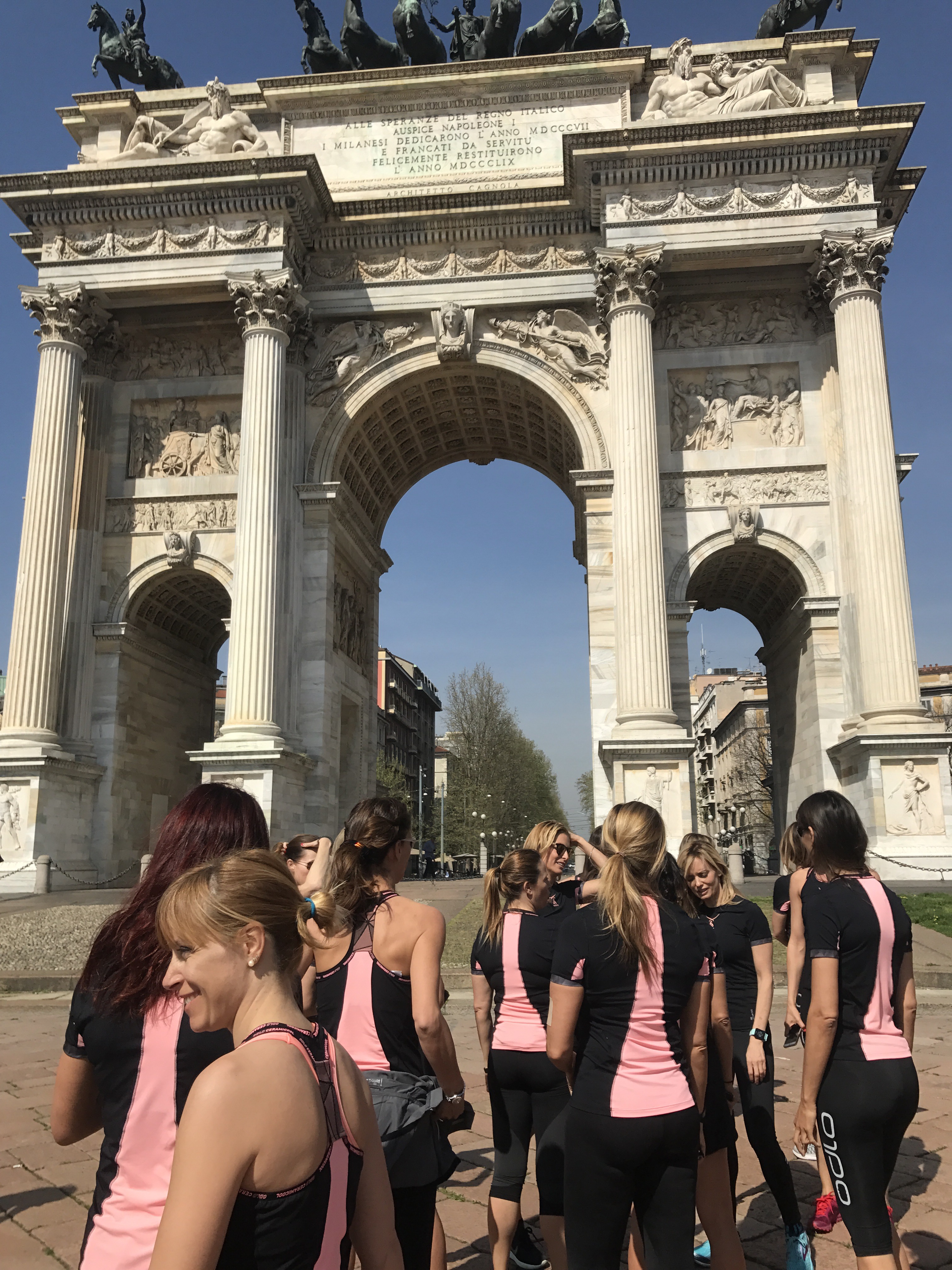 Partite dall’Arco della Pace tra un chilometro e l’altro sono stati svolti degli esercizi per sciogliere i muscoli.