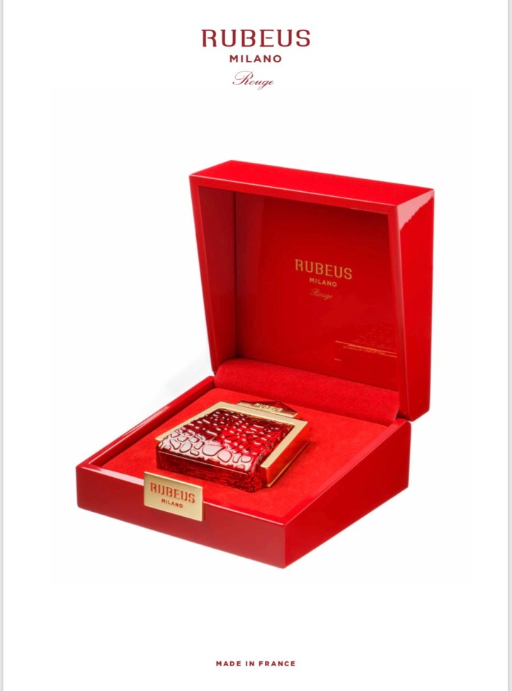 Rubeus Milano, marchio italiano di accessori in varie tipologie di cuoio pregiato, diventato famoso in tutto il mondo con le sue borse di cocco- drillo uniche nel loro genere, decorate con pietre preziose, annuncia il lancio della sua prima fragranza Rubeus Rouge.