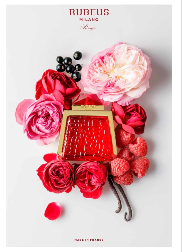 Un giardino d’estate pieno dell’aroma di rose in fiore, del raffinato champagne rosé che riempie un calice con le sue bollicine maliziose e il profumo dolce e aspro di frutti di bosco freschi: questa è l’essenza della prima fragranza Rubeus Milano, creazione della maestra profum- iera Sonia Constant, nota per aver fatto parte del Fine Perfume Cre- ation Team dell’azienda Givaudan, una dei leader nella creazione di fragranze uniche (J’adore Christian Dior, Marc Jacobs Lola, Tom Ford, By Killian, Cristal Noir Versace).