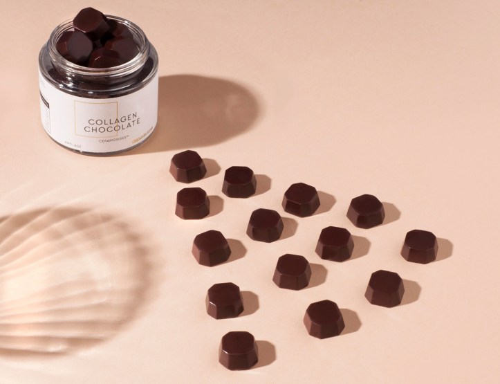 Il Collagen Chocolate contiene CeramosidesTM, sostanza in grado di idratare la pelle dall’interno grazie a preziosi lipidi chiamati ceramide. Durante l’invecchiamento iniziamo a perderli, e l’assunzione orale di fitoceramide aiuta a ripristinare il contenuto di questa nella pelle, per un forte effetto idratante e azione anti età.