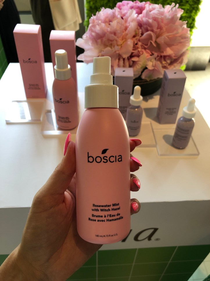 Boscia propone come novità la Rosewater Mist con Witch Hazel. Acqua idratante da spruzzare in viso per idratare.