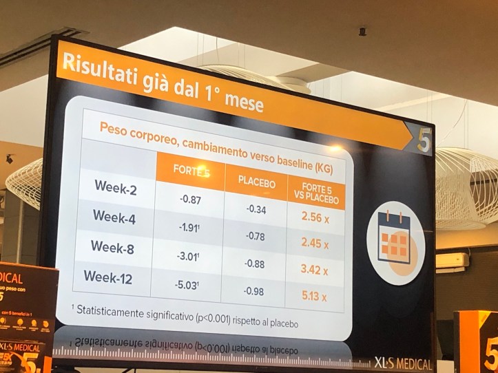 È una perdita di peso graduale. Inoltre diminuisce l’indice di massa corporea. Con l’assunzione del prodotto si ha una riduzione dell’indice di massa corporea 5 volte più del placebo.