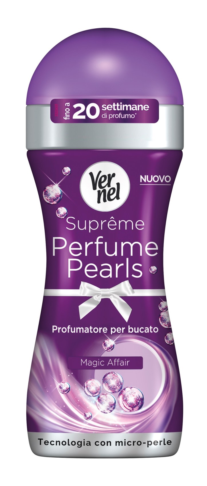 Le Suprême Perfume Pearls di Vernel, disponibili in quattro fragranze, sono un “piccolo piacere quotidiano” da aggiungere a piacimento direttamente al lavaggio insieme a detersivo e ammorbidente.