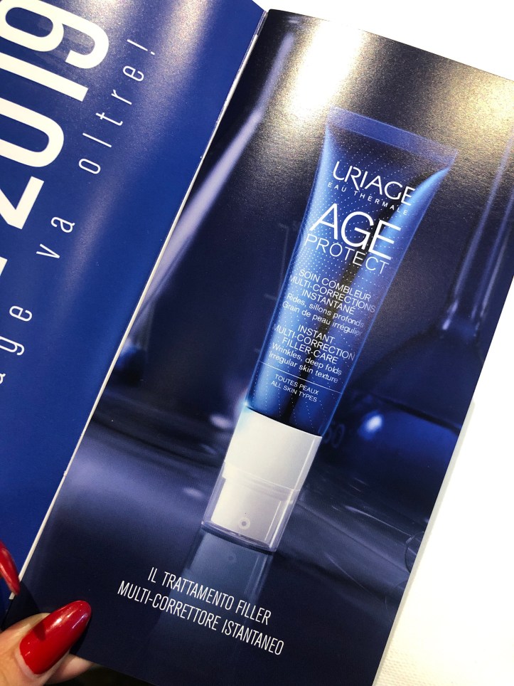 Uriage Eau Thermale Age Protect è un trattamento filler multi correttore istantaneo: vi è una azione correttiva legata al reticolo, acido ialuronico a basso peso molecolare e sangue di drago, inoltre vi sono le vitamine E e C è l’acqua termale che ha proprietà antiossidanti, mentre l’azione istantanea si ha con un filler like che riempie le rughe riflettendo la luce, inoltre l’estratto di frutto di rosa che leviga.