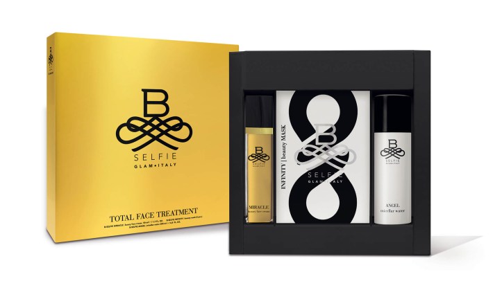 B-SELFIE Total Face Treatment: 5 maschere B-SELFIE Infinity per una sferzata di energia alla pelle in soli 20’, sostenuta dell’acqua micellare B-SELFIE Angel e dalla crema viso anti-age B-SELFIE Miracle (prezzo consigliato al pubblico 139 €).