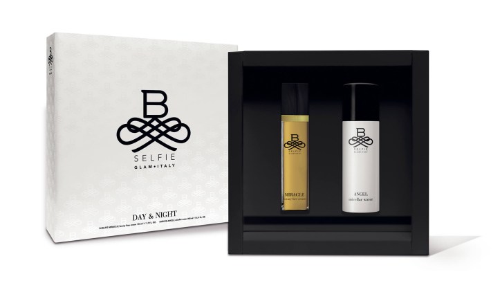 B-SELFIE Day & Night: la detersione dell’acqua micellare B-SELFIE Angel unita al sensazionale trattamento anti-age della crema viso 24 ore B-SELFIE Miracle (prezzo consigliato al pubblico 99 €);