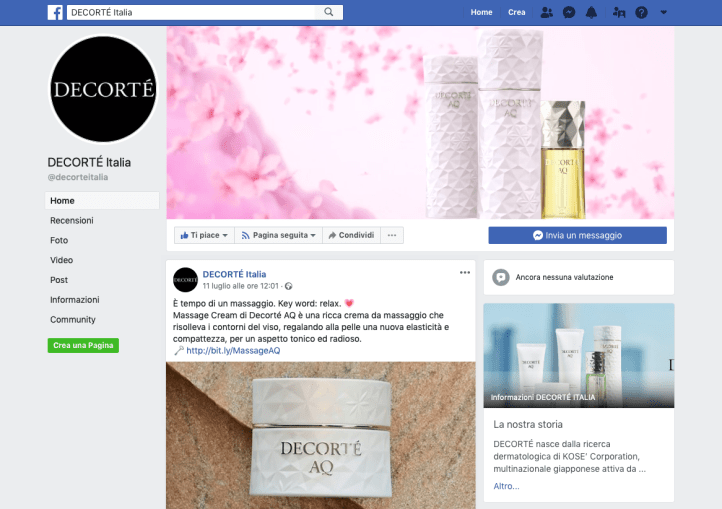 la pagina Facebook Decorté Italia e il profilo Instagram @decorteitalia