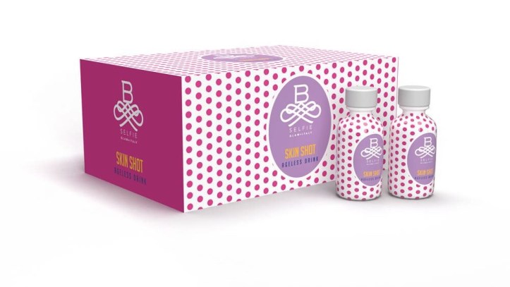 B-SELFIE Skin Shot è una formulazione esclusiva che, grazie a un brevetto internazionale, per la prima volta unisce i peptidi idrolizzati di collagene all’acido ialuronico e ad altri principi attivi antiossidanti e vitaminici di straordinaria efficacia. Un vero e proprio “collagene da bere”, che assicura un formidabile trattamento anti-age per tutto il corpo: oltre a donare turgore e compattezza alla pelle, svolge infatti un’azione intensamente benefica anche per la salute delle articolazioni. L’azione combinata dei suoi principi attivi contrasta la formazione delle rughe e il rilassamento cutaneo causati dall’invecchiamento, dall’esposizione ai raggi ultravioletti e dall’inquinamento ambientale, stimolando il metabolismo dell’epidermide e donando una pelle più giovane, sana e levigata. Il miglioramento della struttura tissutale contribuisce inoltre alla riduzione degli inestetismi della cellulite (Utilizzo: 1 flaconcino da 20 ml da assumere ogni mattina. Formato: 20 flaconcini da 20 ml cadauno. Confezione per 20 giorni di trattamento. Prezzo consigliato al pubblico 59,90 €).
