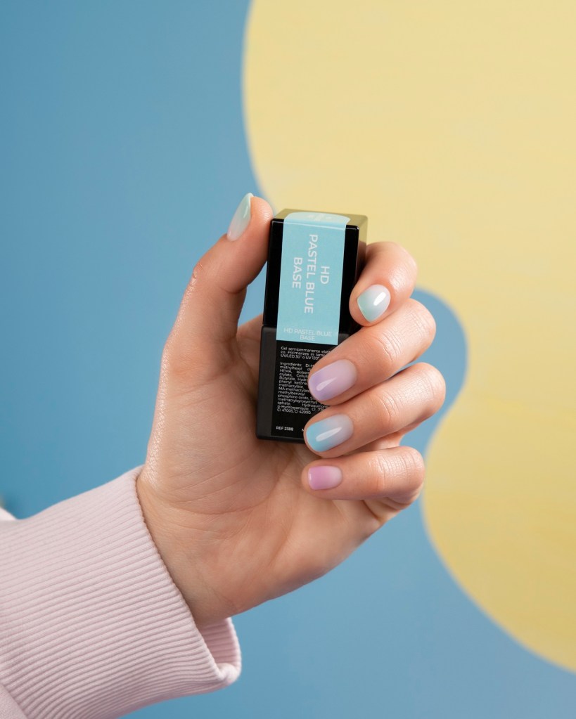 Il kit contiene quattro nuances pastello: HD Pastel Mint Base, HD Pastel Blue Base, HD Pastel Lilac Base e HD Pastel Pink Base molto pigmentate e coprenti sin dalla prima stesura e perfette anche per realizzare nail art sfumate come ad esempio il babyboomer.