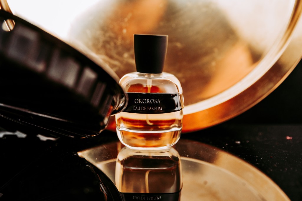 L’orizzonte del pomeriggio, che sta diventando sera, va via via scurendo quasi verso il marrone, il rosso del tramonto si fonde con la notte. Qui nasce OROROSA con le sue sfumature di essenza di mandarino e di tabacco.
