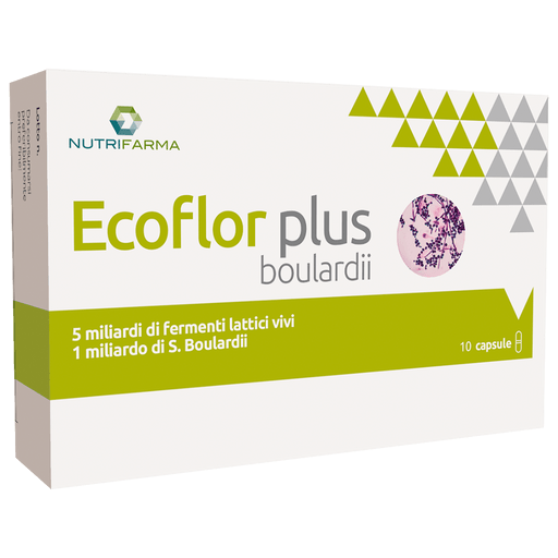 Ecoflor boulardii di Nutrifarma è un integratore alimentare di fermenti lattici e S. Boulardii, tradizionalmente utilizzati per l’equilibrio della flora intestinale, con vitamine del gruppo B (tra cui acido folico, Vit B6 e Vit B12) che contribuiscono alla normale funzione del sistema immunitario, inulina e FOS. È consigliata l’assunzione di 1 o 2 capsule al giorno, ai pasti.