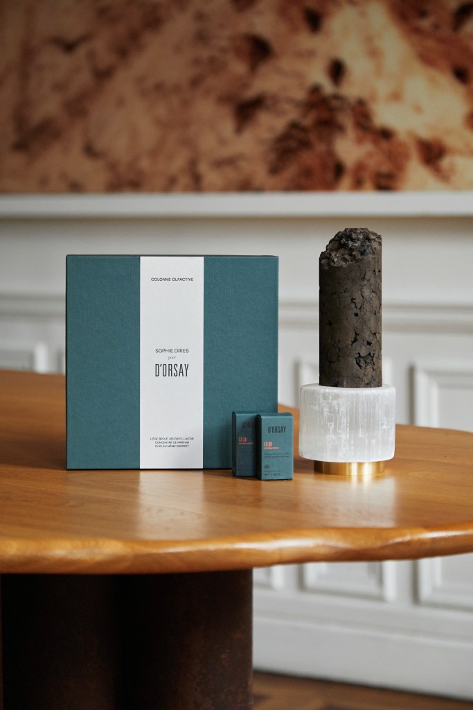 Un oggetto decorativo e olfattivo all’incrocio dei codici estetici dell’architetto Sophie Dries e di D’ORSAY. Sophie Dries apporta la propria visione radicale stravolgendo l’iconico trittico di materiali di D’ORSAY: minerale (pietra di travertino), legno (noce), metallo (ottone) e propone la lettura verticale e organica attraverso una nuova combinazione di materiali. Realizzato in edizione limitata, questo nuovo oggetto verrà lanciato durante il Salone del Mobile 2023 a Milano.