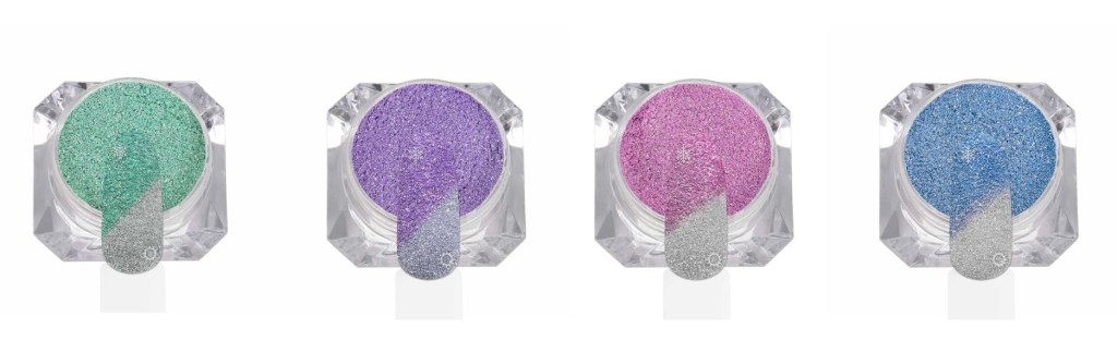 I Glitter Thermo sono brillantini per unghie termosensibili che cambiano colore, adattando la tonalità alle variazioni di temperatura. La gradazione cambia quindi in base alla temperatura: i glitter colorati, infatti, con il caldo si trasformano in argento, creando diverse sfumature.