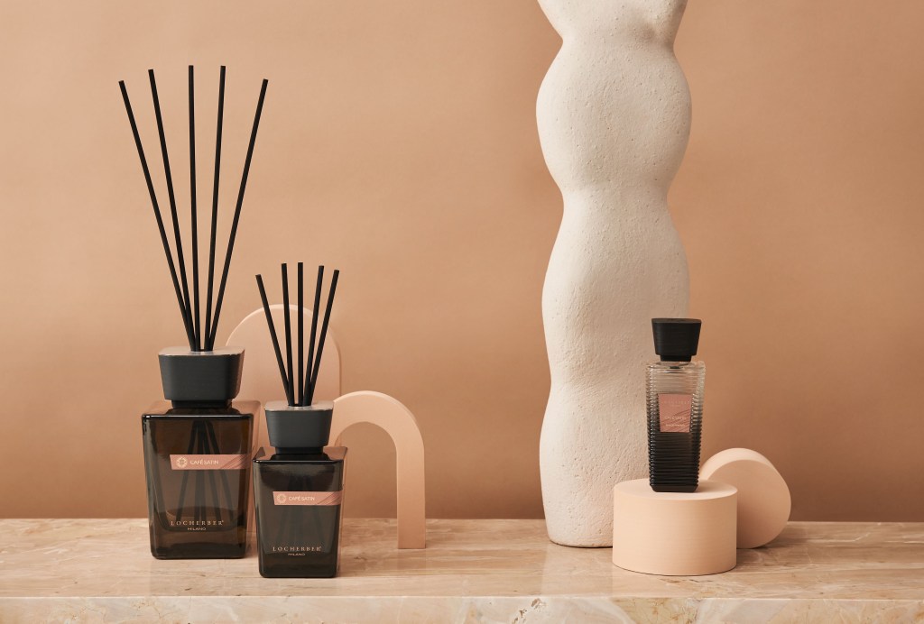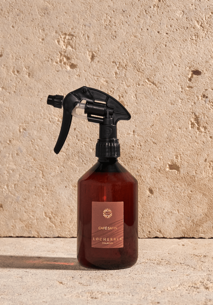 CAFÉ SATIN viene proposto anche nella versione diffusore spray trigger (da 500 ml), Eau de Parfum (da 100 ml e nella pratica travel size da 10 ml) e candela profumata (da 450 gr).