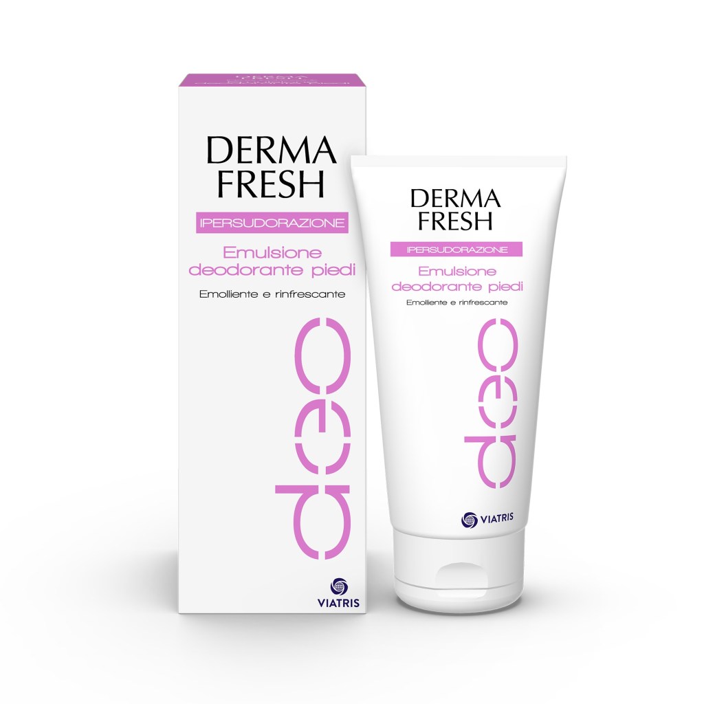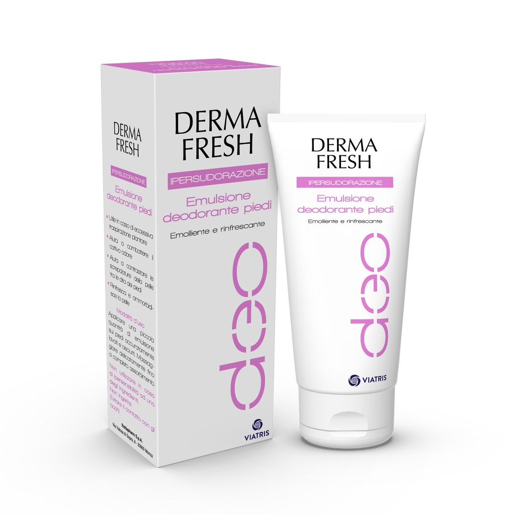 DERMAFRESH Ipersudorazione Emulsione Piedi è un’emulsione deodorante utile in caso di eccessiva traspirazione del piede (iperidrosi plantare). Aiuta a combattere il cattivo odore e la secchezza della cute mentre rinfresca e ammorbidisce la pelle.