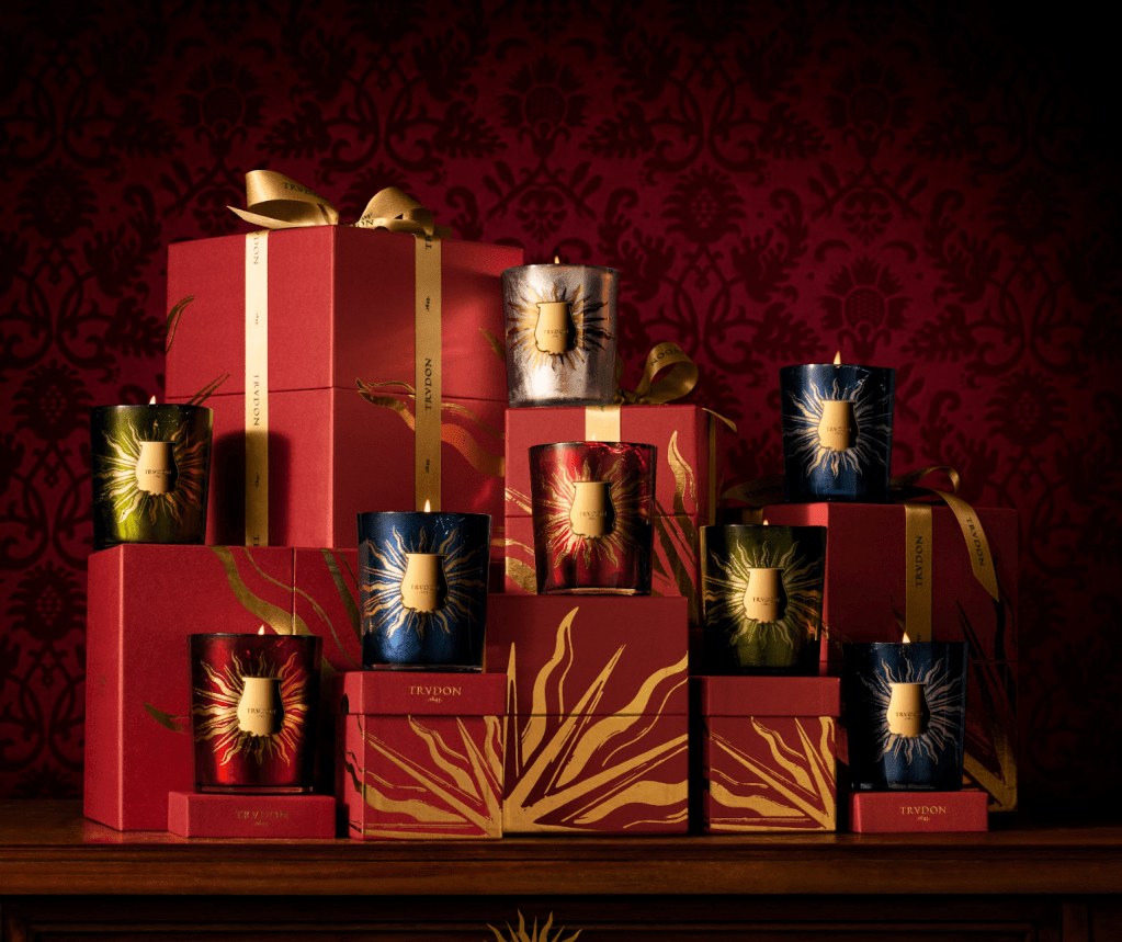 Per la stagione delle festività, Trudon si illumina ancora di più celebrando il suo 380esimo anniversario. Composto da 4 diverse profumazioni, confezionati con cura e con un unico savoir-faire, i bicchieri colorati – rosso per Gloria, verde per Gabriel, blu per Fir e argento per Altair – sono adornati con una foglia d’oro all’interno: splendendo attraverso la trasparenza, un alone di raggi dorati circonda il simbolo metallico di Trudon.