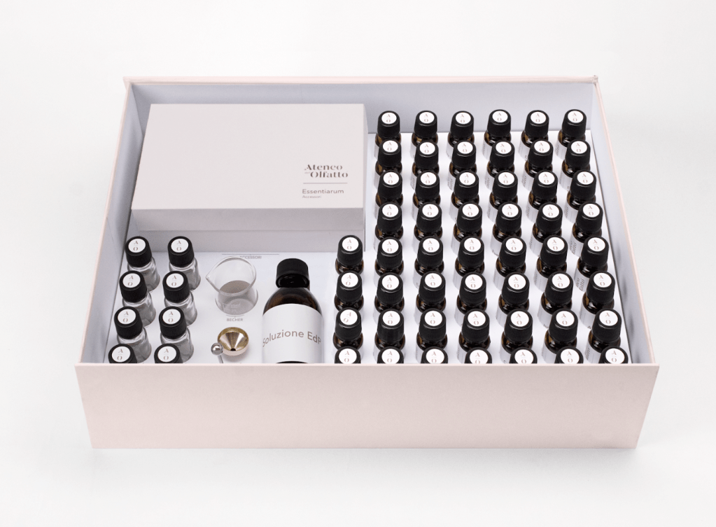 Un’idea regalo originale, per chi vuole approfondire la propria conoscenza del mondo delle fragranze, sono gli Essentiarium®, i kit didattici sviluppati da Ateneo dell’Olfatto come supporto per i propri corsisti e via via apprezzati da un pubblico più ampio per l’immediatezza della fruibilità, che consentono di creare un profumo partendo da zero. Ogni kit include infatti una selezione di materie prime che coprono una vasta gamma di accordi olfattivi, strumenti professionali per la creazione di un proprio laboratorio domestico, un manuale contenente informazioni dettagliate sul processo di composizione e un formulario.