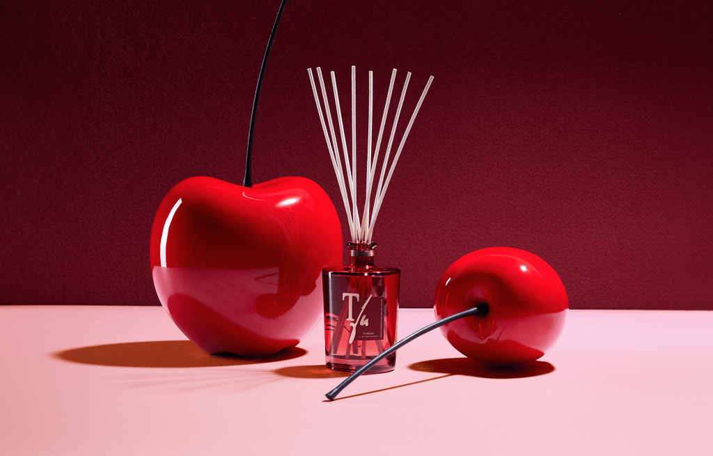 La fragranza è racchiusa in un’elegante bottiglia che riprende il colore del frutto, arricchita dalla classica finitura dorata del packaging che conferisce al prodotto raffinatezza ed eleganza. Completano la linea anche le candele profumate e la proposta dedicata alla biancheria che non contiene alcol e consente di essere vaporizzata su tessuti, tende, biancheria e divani.