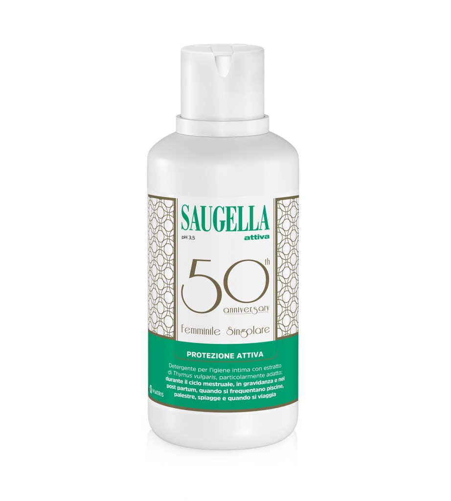 Saugella ATTIVA: detergente per l’igiene intima a pH acido (3.5) con Thymus vulgaris (timo), un antibatterico naturale che aiuta a proteggere nei momenti più a rischio.