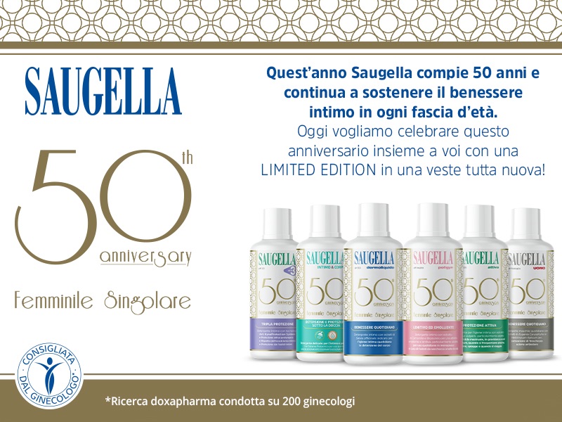 La limited edition Saugella 50th anniversary è disponibile in farmacia e parafarmacia.