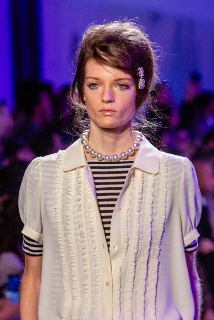 del brand, ha creato hairlooks ispirati al feeling della nuova collezione, raccontando il passaggio dalla gioventù all’età adulta. Sia sui look lunghi che per quelli più corti è stata ricreata una riga centrale ben marcata, dopodichè i capelli sono stati modellati verso l’esterno del viso per essere portati dietro alle orecchie, azzerando il volume.