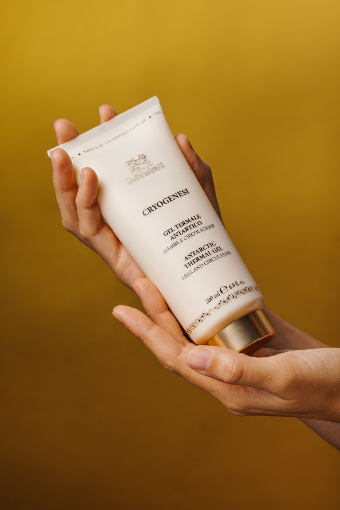 Gel termale defaticante per gambe. Formulato con attivi funzionali come la Centella Asiatica e la Vitis Vinifera, stimola la microcircolazione, protegge i vasi sanguigni e promuove l’eliminazione dei liquidi in eccesso. Arricchito con una combinazione unica e sinergica di ingredienti, quali Glicoproteina Antartica, Mentolo Naturale, Burro di Babassu, Acqua Fossile Salsobromoiodica, Sambucus Nigra, Mirtillo. La cute risulterà rivitalizzata, vellutata e più tonica, avvolta da una piacevole sensazione di freschezza.