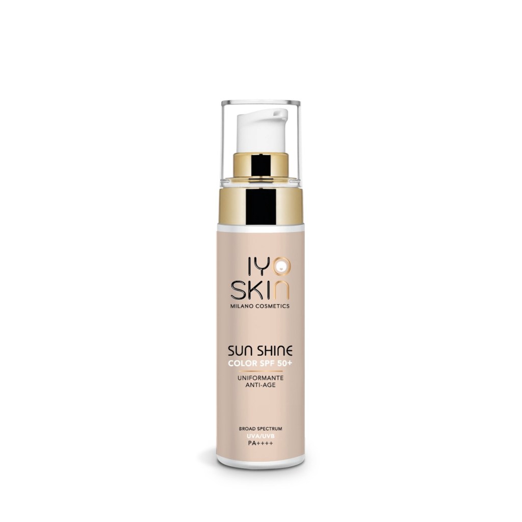 Sun Shine. Formula viso antietà Water Resistant, previene i danni da foto-invecchiamento grazie ad una protezione UVA ultra forte ed ad un perfetto equilibrio UVB/UVA. L’associazione di sei filtri solari protegge efficacemente dai raggi ultravioletti e consente di spalmare in maniera uniforme il prodotto favorendone l’assorbimento ed evitando il fastidioso effetto “scia bianca”. Non comedogeno. Contiene Vitamina E. Prezzo al pubblico € 35