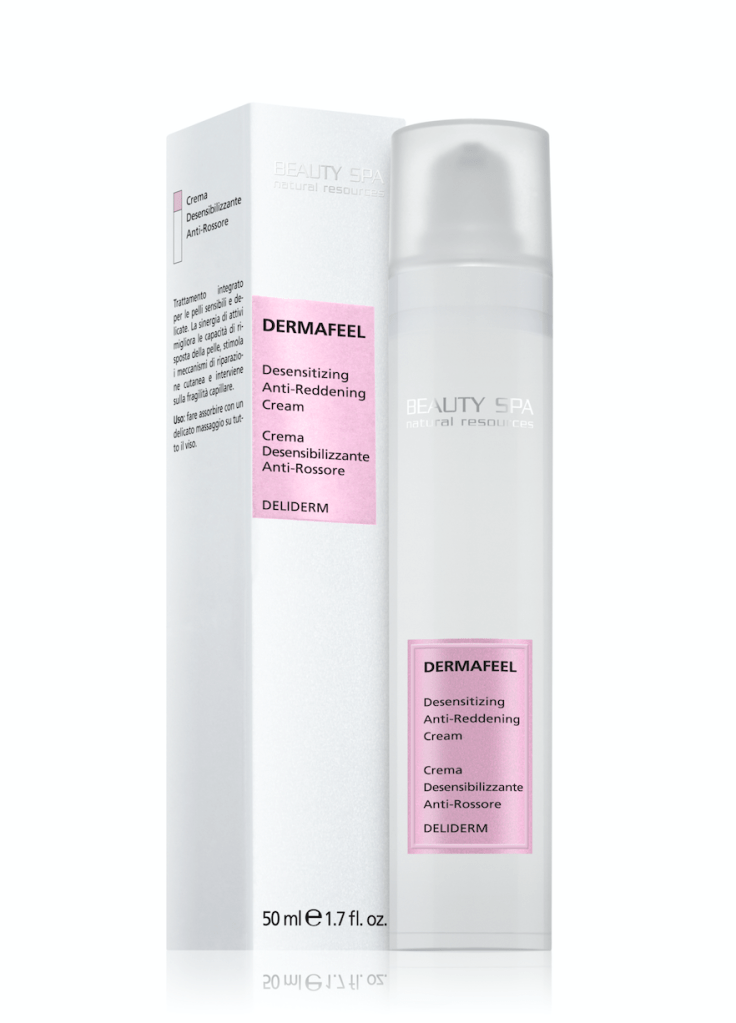 DERMAFEEL, crema desensibilizzante anti-rossore, è un’ emulsione ipertecnologica normalizzante, in cui un pool di attivi interviene sull’infiammazione cutanea e sulla fragilità capillare, riportando l’epidermide alla normalità e proteggendola dagli effetti dannosi dello stress ambientale. Arricchita con CALMOSENSINE, un lipopeptide che esercita un’ azione calmante e rilassante. VENUCEANE, un antiossidante che difende il derma dalle aggressioni esterne e dagli UV, contrastando il foto-invecchiamento e stimolando i processi di riparazione cutanea. ESCULOSIDE, estratto dalla corteccia dell’Ippocastano, che agisce sui vasi sanguigni e sulla microcircolazione. Olio di Calendula, lenitivo e antinfiammatorio, ricco di flavonoidi, che aiuta la pelle a ritrovare il suo equilibrio naturale, incentivando la produzione del collagene.